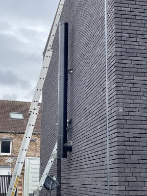 Plaatsen houtkachel en plaatsing dubbelwandige schouw zwart